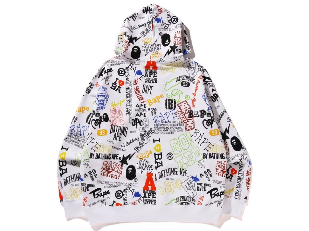 - Bílá mikina od japonské značky Bape (A Bathing Ape).