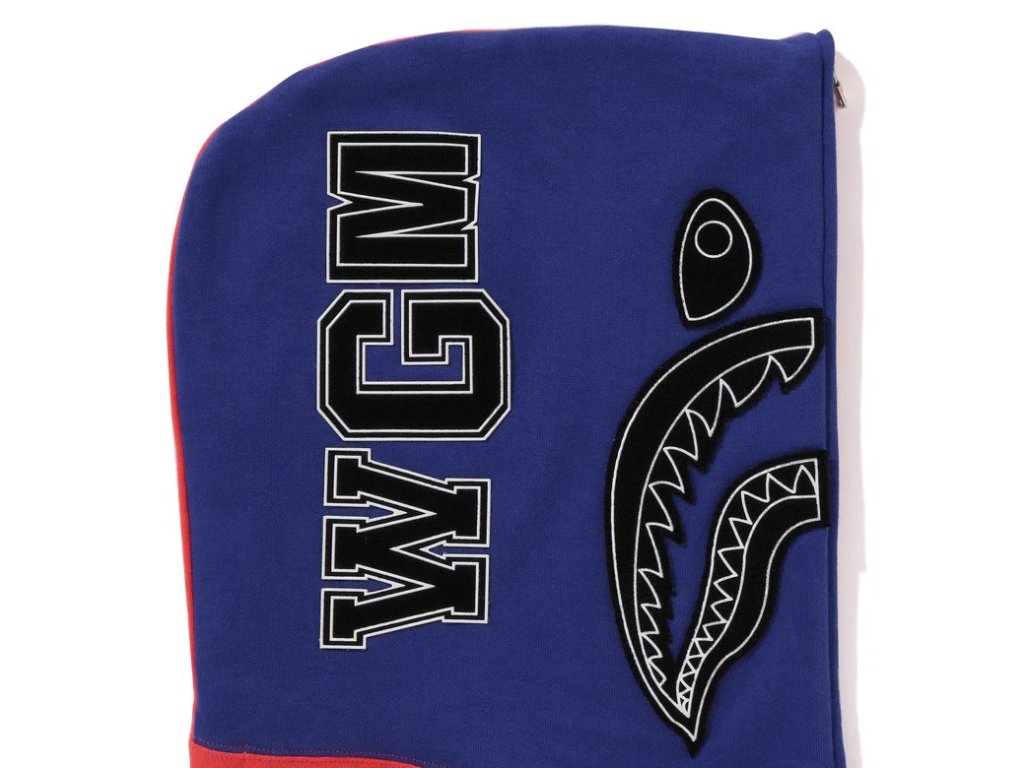 - Tradiční, nášivka žraloka a nápis WGM (World Gone Mad) na kapuci.