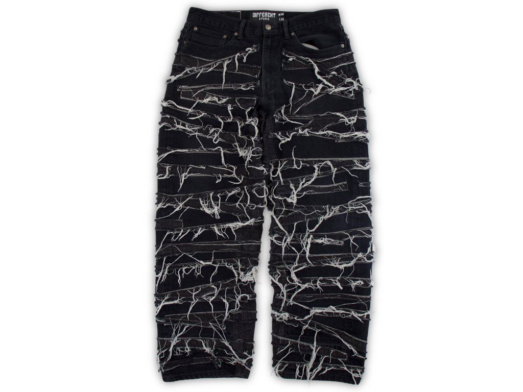 - Upcycled džíny od slovenské značky Different Studio s propracovanými detaily.