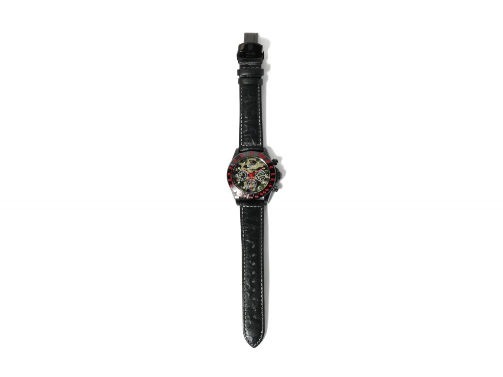- Hodinky jsou vybaveny koženým páskem s vyraženým Bape Camo printem.
