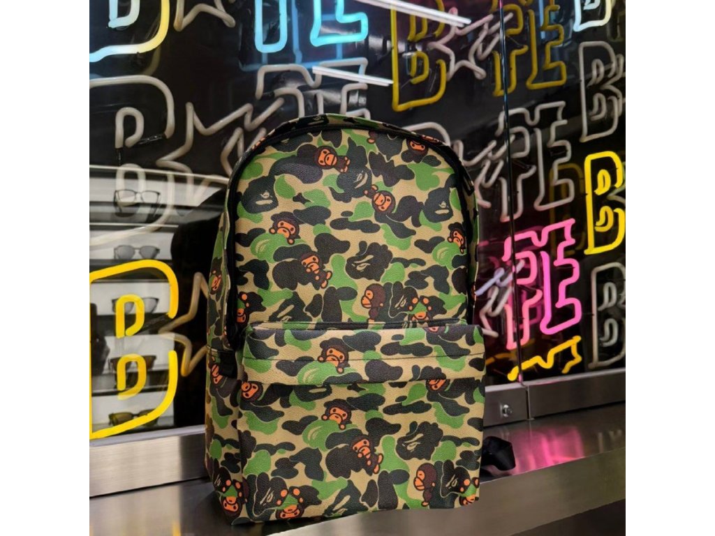 - Maskáčový batoh od japonské značky Bape (A Bathing Ape).