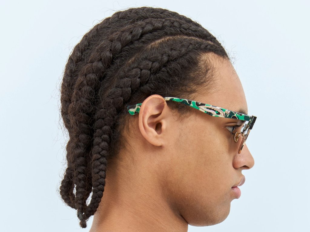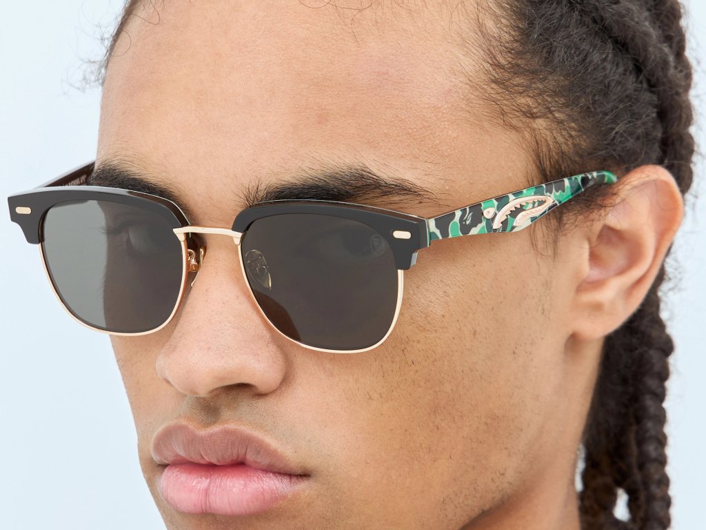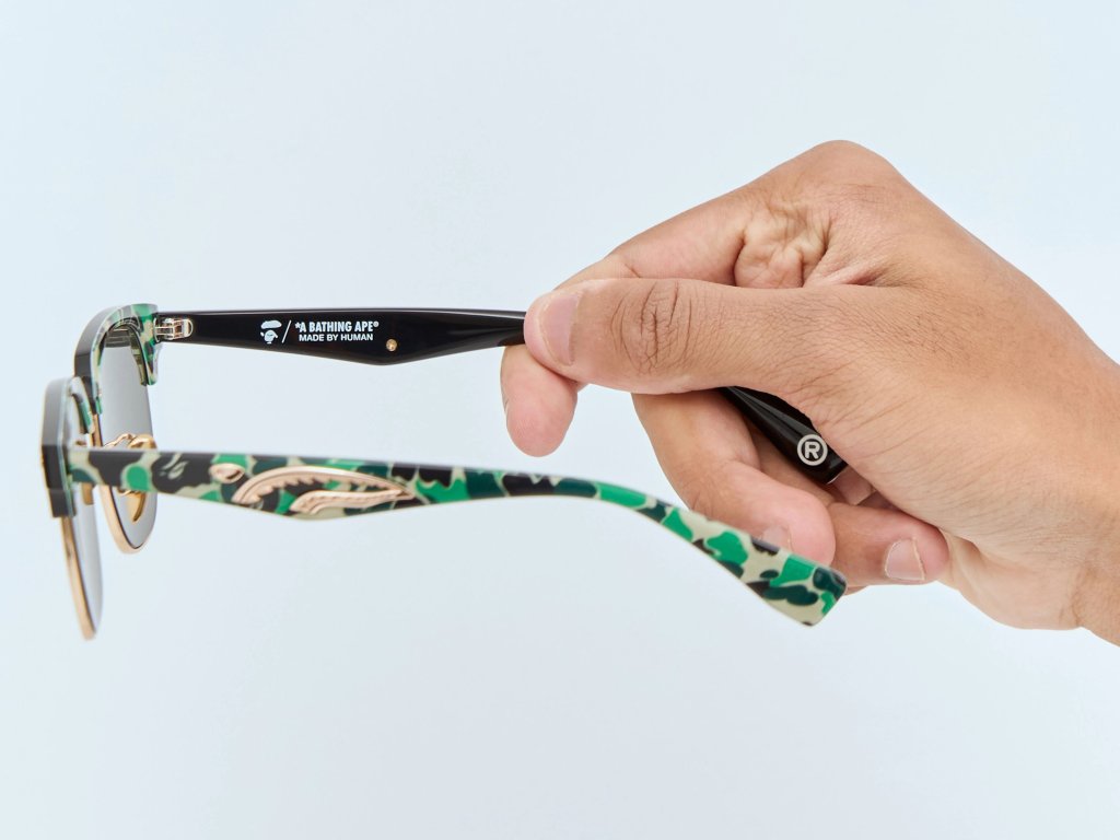 - Sluneční brýle od japonské značky Bape (A Bathing Ape) vyrobené z acetátu a nerezové oceli.