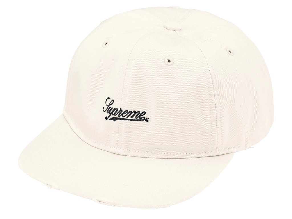Supreme Distressed Script 6-Panel Cap White