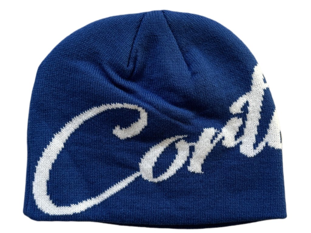 - Modrý kulich od britské značky Corteiz.