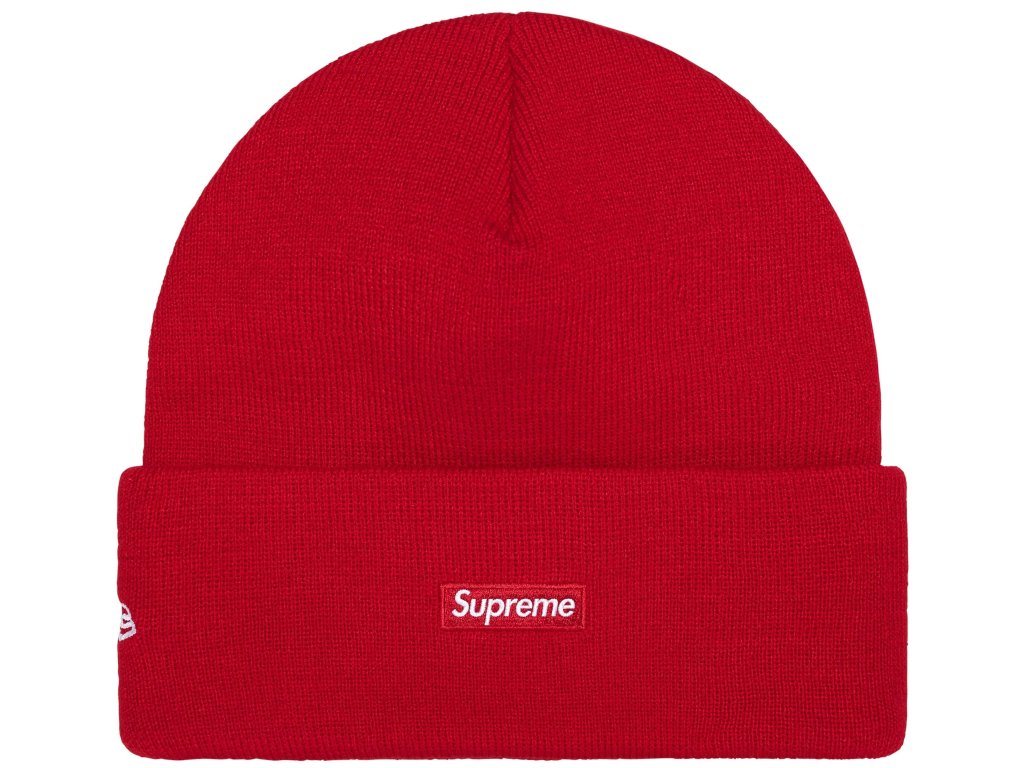 - Červený kulich od značky Supreme s vyšívaným tribal logem.