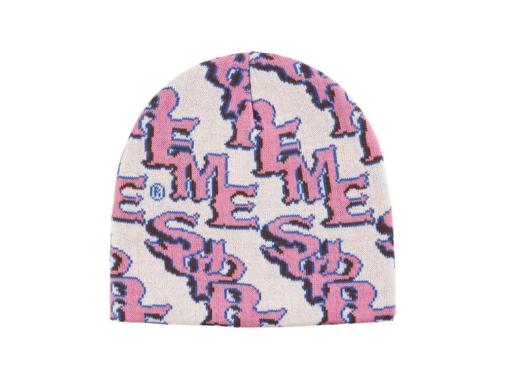 Supreme Slanted Gothic Outline Beanie White/Pink