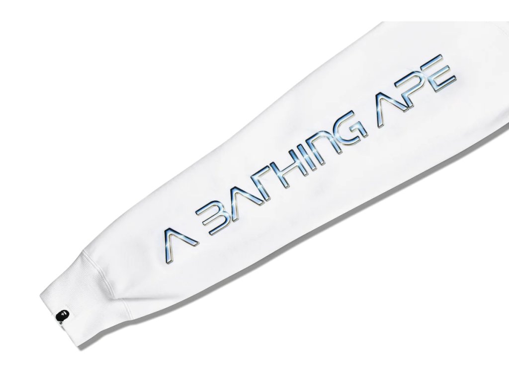 - Ikonická full zip mikina od japonské značky Bape (A Bathing Ape) v bílém provedení.