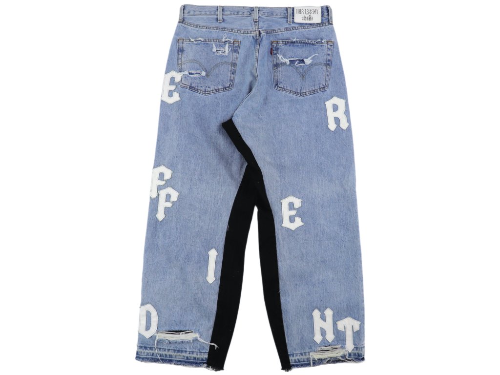 - Upcycled džíny od slovenské značky Different Studio s propracovanými detaily.