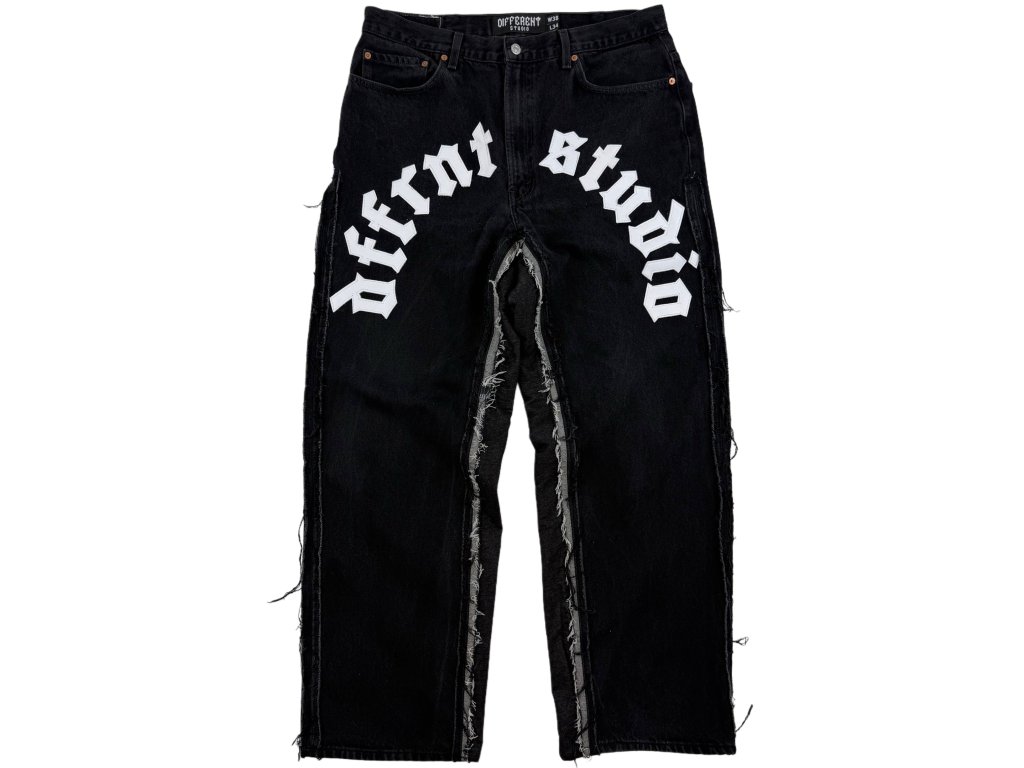 - Na kalhotách jsou našité písmena z pravé kůže v bílé barvě které tvoří název DFFRNT STUDIO.