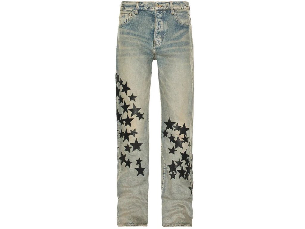 AMIRI Leather Star Straight Jeans "Clay/Indigo"