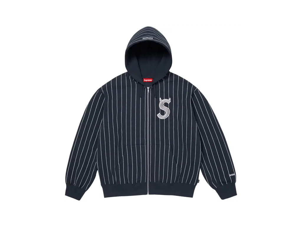 - Zip hoodie v černé barvě od Supreme z kolekce SS26 v pruhovaném designu.