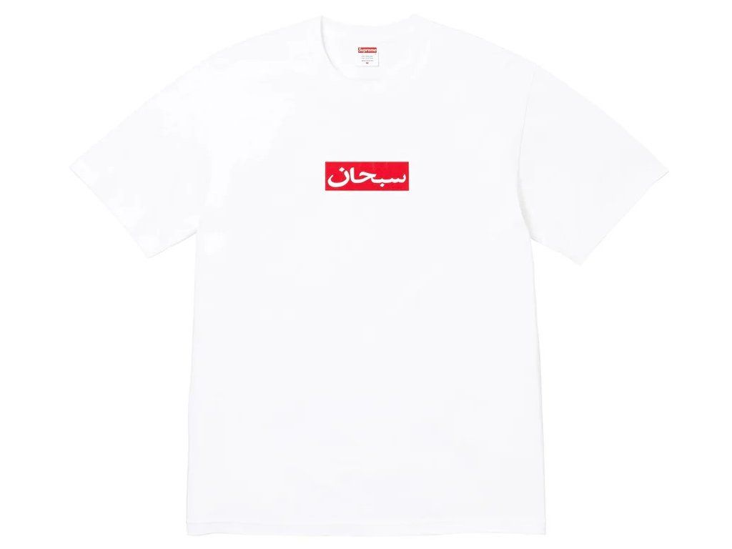 - Box Logo motiv s nápisem "SUPREME" v arabštině.