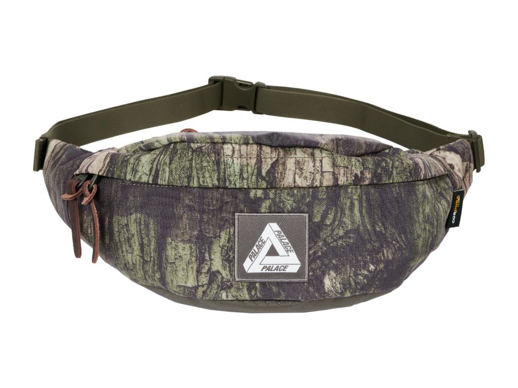 - Ledvinka od populární skejtové značky Palace Skateboards v maskáčovém provedení.