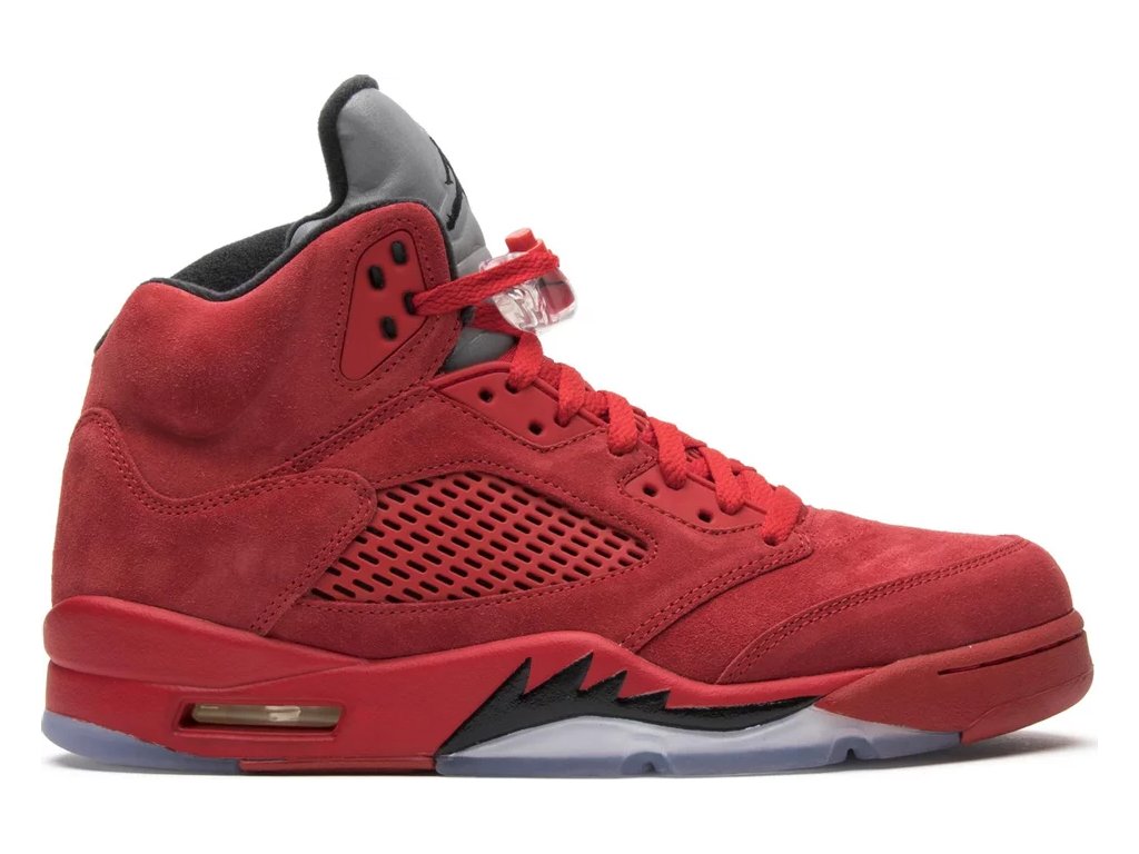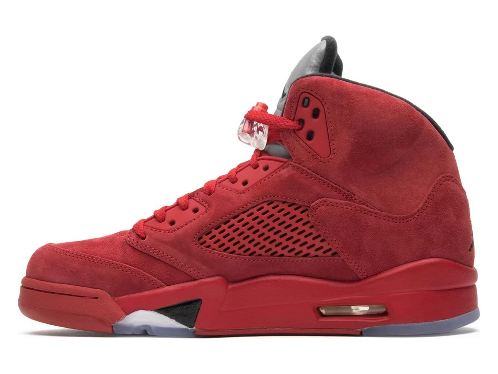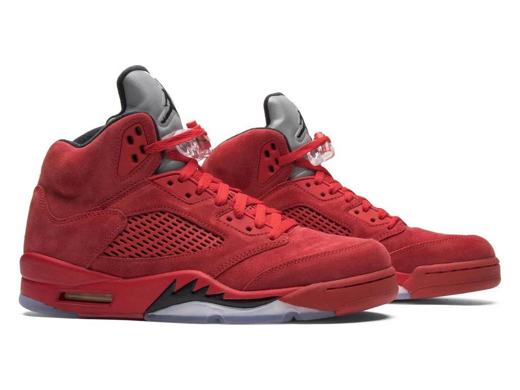 - Legendární model Air Jordan 5 Retro v celo-červeném provedení s černými detaily. To vše zdobí reflexní jazyk a průhledná "icy sole" podrážka.