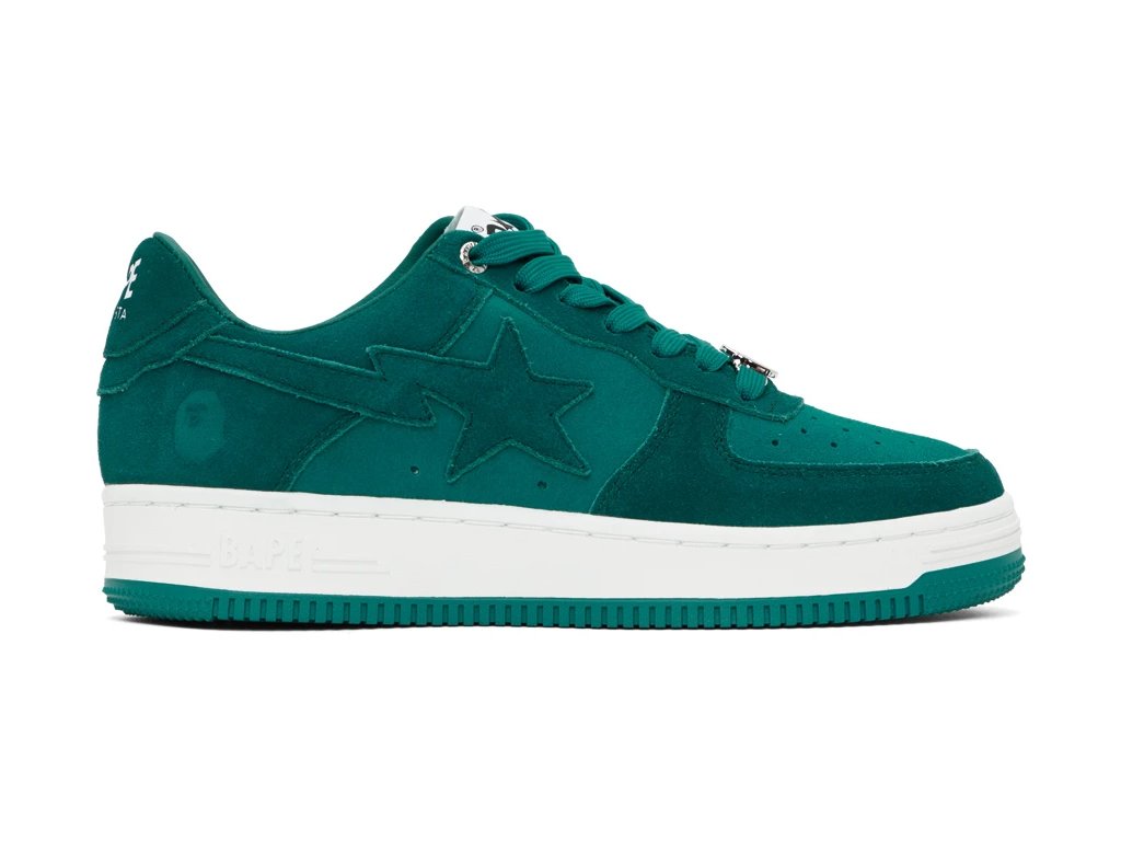 - Ikonické tenisky Bape Sta od japonské značky Bape (A Bathing Ape) v zeleném barevném provedení. Vytlačená Ape Head na zadním panelu tenisky. Bape Sta logo na patě. Propracované detaily. Součástí balení je také designová Bape krabice, vak s logem a náhradní tkaničky. Velmi limitovaný release.